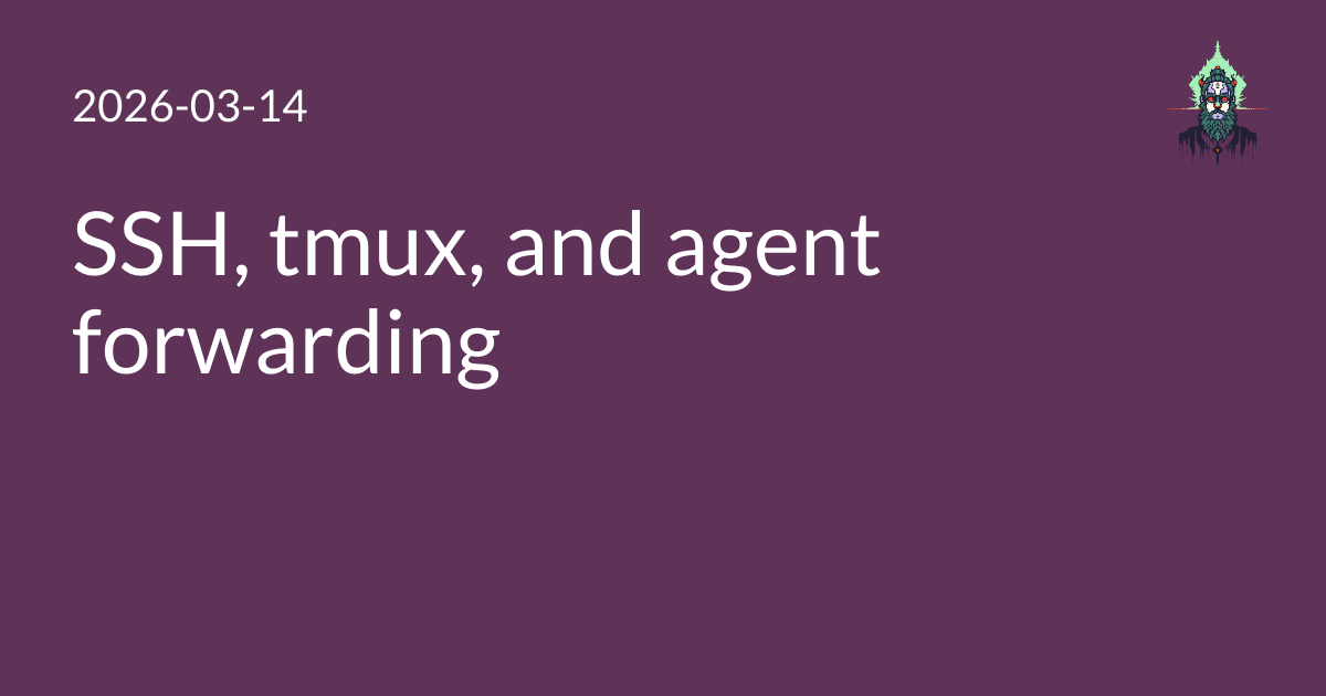Furthermore, if we are using ssh to connect out from tmux (for instance, pulling git repos inside of the tmux session), we’d like to use a local agent if our session is local1, but a forwarded agent if one is available from an ssh connection.